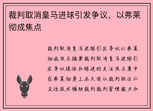 裁判取消皇马进球引发争议,以弗莱彻成焦点